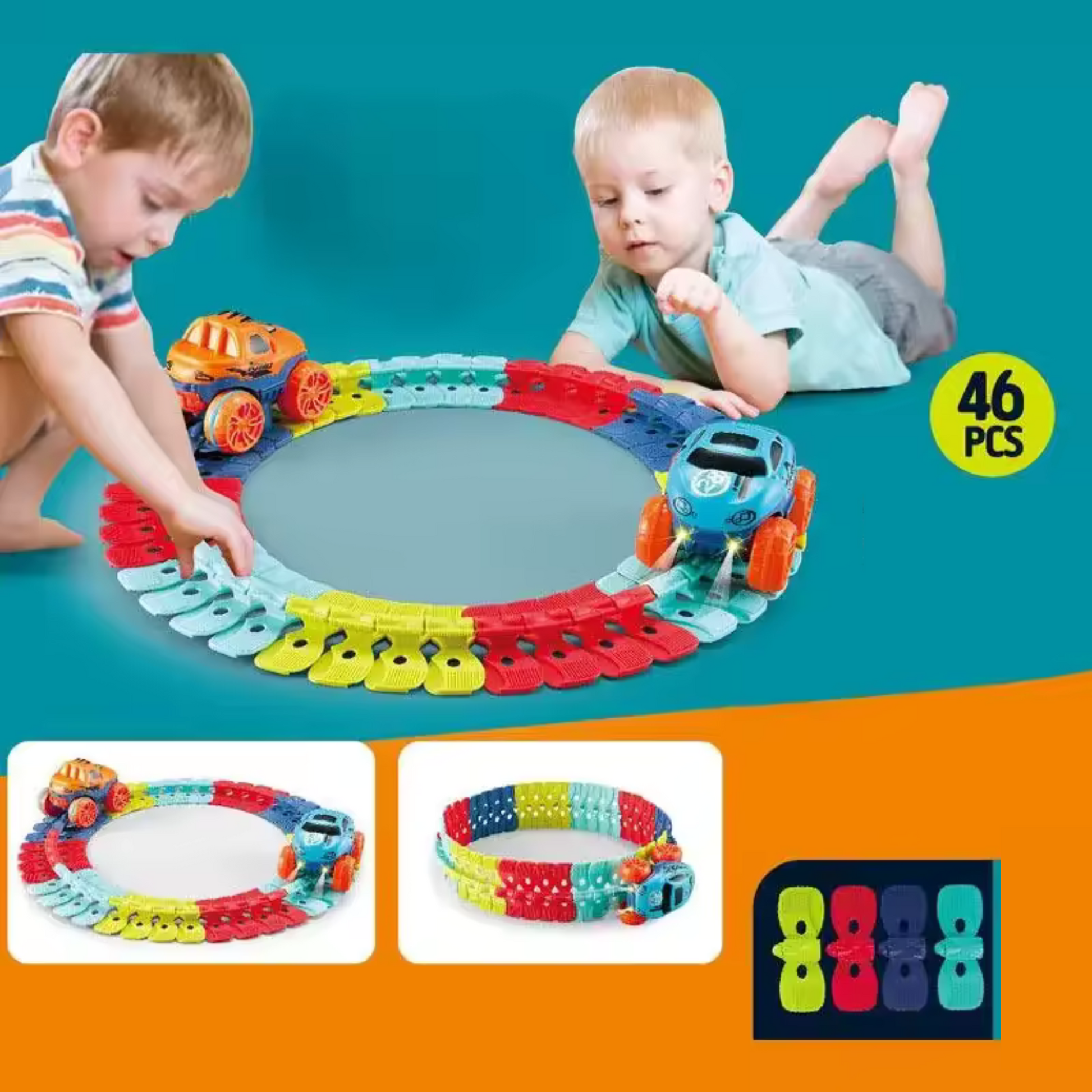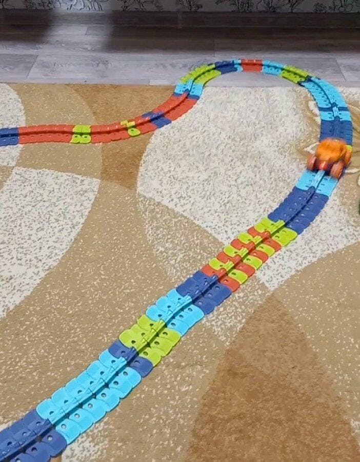 Answer 3: Yes, the track is designed for easy assembly, allowing children to snap the pieces together independently. This encourages collaborative play and fosters creativity as they build their own unique racing layouts.